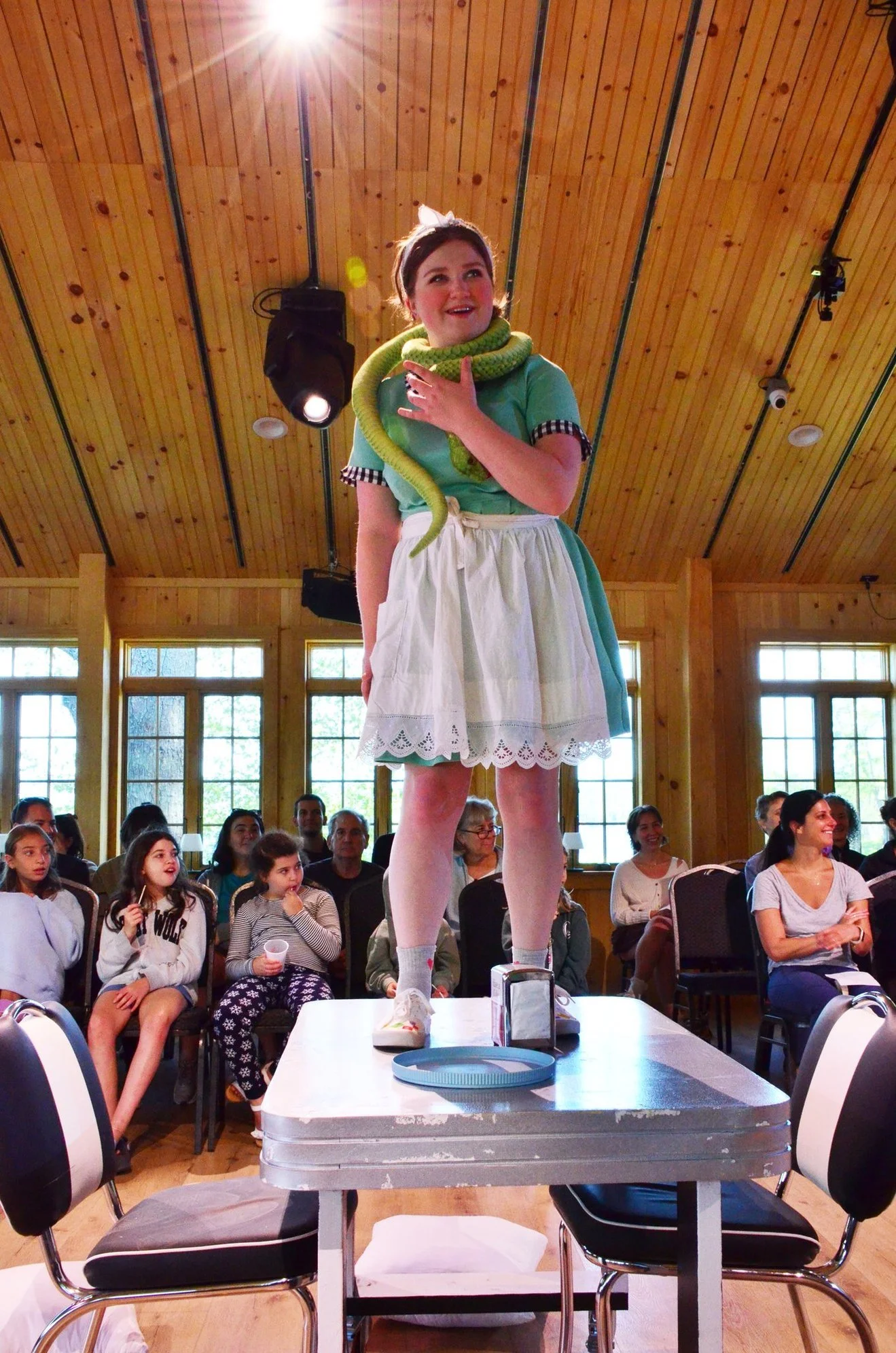 Quisisana Resort, nestled against Lake Kezar in Center Lovell, Maine, is an award-winning resort where the world-class performers serve you meals, patrol the beach, and change your bedsheets. Each night of the week-long stay has a different show, ranging from chamber music, musicals, operas, and revues.
